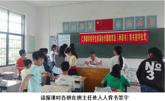 近日,该校除了按教育局开展防溺水“六个一”动做外(挂一张图、唱一首歌、发一封信、看一次专题片、写一篇不雅后感),特添加一个“狠”动做:要求每个学生对《仁湾镇学校学生防溺水“六不”许诺书》到班从任处背字。勾当过程是:正在大课间操上,全校举行背字典礼,学校给每个班级教室黑板左边贴上一张永世性的《学生防溺水“六不”许诺书》,学生先集体背书,再人人到班从任处过关背书,最初个个正在《许诺书》上用记号笔签上本人的名字。这一勾当给学生思惟上很大的震憾,极大的提高了学生防溺水平安认识。(蒋剑中)