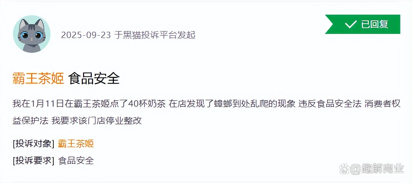对于霸王茶姬的注释,有网友认为,为了让奶茶喝起来口感更好,霸王茶姬合理添加冰勃朗并无大碍;可是也有网友暗示,若是不是纯牛奶,卖这么贵,似乎就不合理了;不外,也有网友说,都喝奶茶了,还正在乎胖嘛?也有网友暗示:一概不喝。客岁6月,霸王茶姬还曾因部门消费者正在饮用霸王茶姬新产物“万里木兰”后呈现心悸、心慌等不适反映激发关心。对此,霸王茶姬暗示,按照国度权势巨子检测机构华测检测出具的“万里木兰”产物成分检测演讲,一杯“万里木兰”的咖啡因含量相当于一杯“拿铁咖啡”的咖啡因含量。因而,这或导致良多日常平凡很少喝咖啡或者比力习惯喝淡茶的消费者正在饮用“万里木兰”后“睡不着”。同时,霸王茶姬也提醒消费者,尽量正在白日饮用“万里木兰”,避免期近将歇息前饮用。“趣解贸易”留意到,截至10月17日,黑猫赞扬平台上,共有5160条赞扬中包含搜刮词“霸王茶姬”。此中,多条涉及食物平安问题,如正在店内发觉甲由乱爬的现象、奶茶中呈现虫子和黑色不明物体、口感不合错误导致腹泻、
